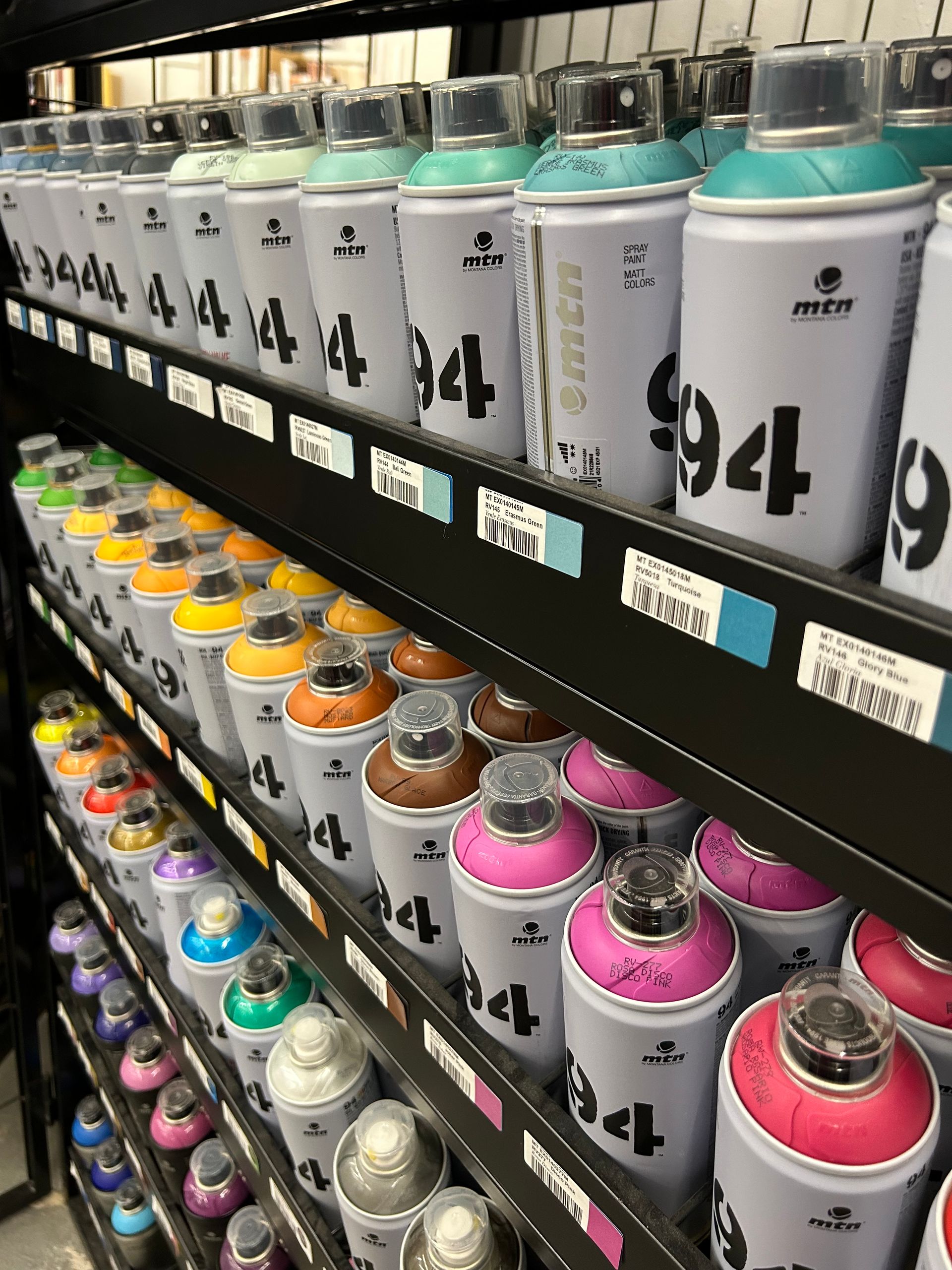 MTN Spray Paint is probably the most versatile aerosol paint on the market. Thanks to its extensive color range and quick drying ability, it is a suitable tool for practically any type of creative work. We carry their 94 (Matte), Hardcore (Gloss), and their Waterbased lines of spray paint. We also have a variety of replacement caps!