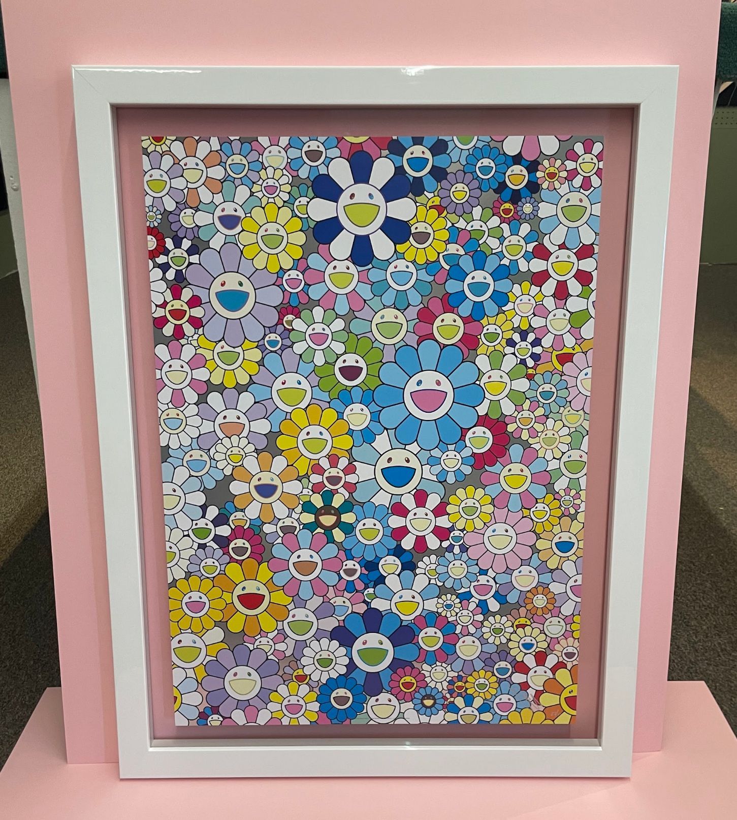 A float mount is when the art is secured to foamcore and raised above matboard to create a gap, so there is a shadow visible underneath the piece.